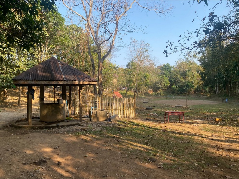 キャンパスの様子。左手に見えるのが地下水を汲み上げる井戸。右手にある広いスペースは、放課後のクラブ活動等に使用される。