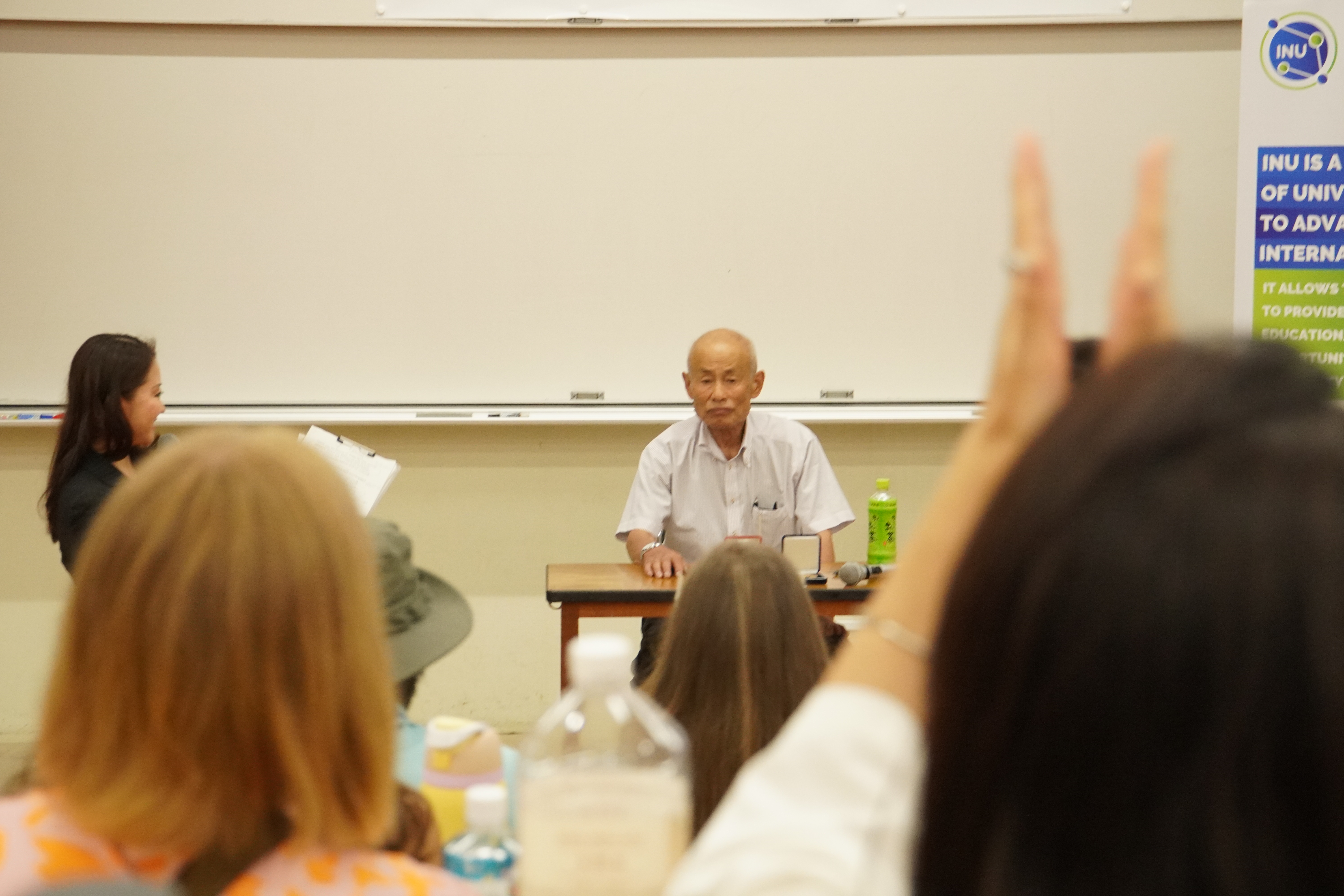 - 被爆者である箕牧智之氏(日本被団協 代表委員)と小倉桂子氏、またファンデルドゥース瑠璃氏(広島大学平和センター 准教授 )による、広島の被爆と復興に関する講演および講義