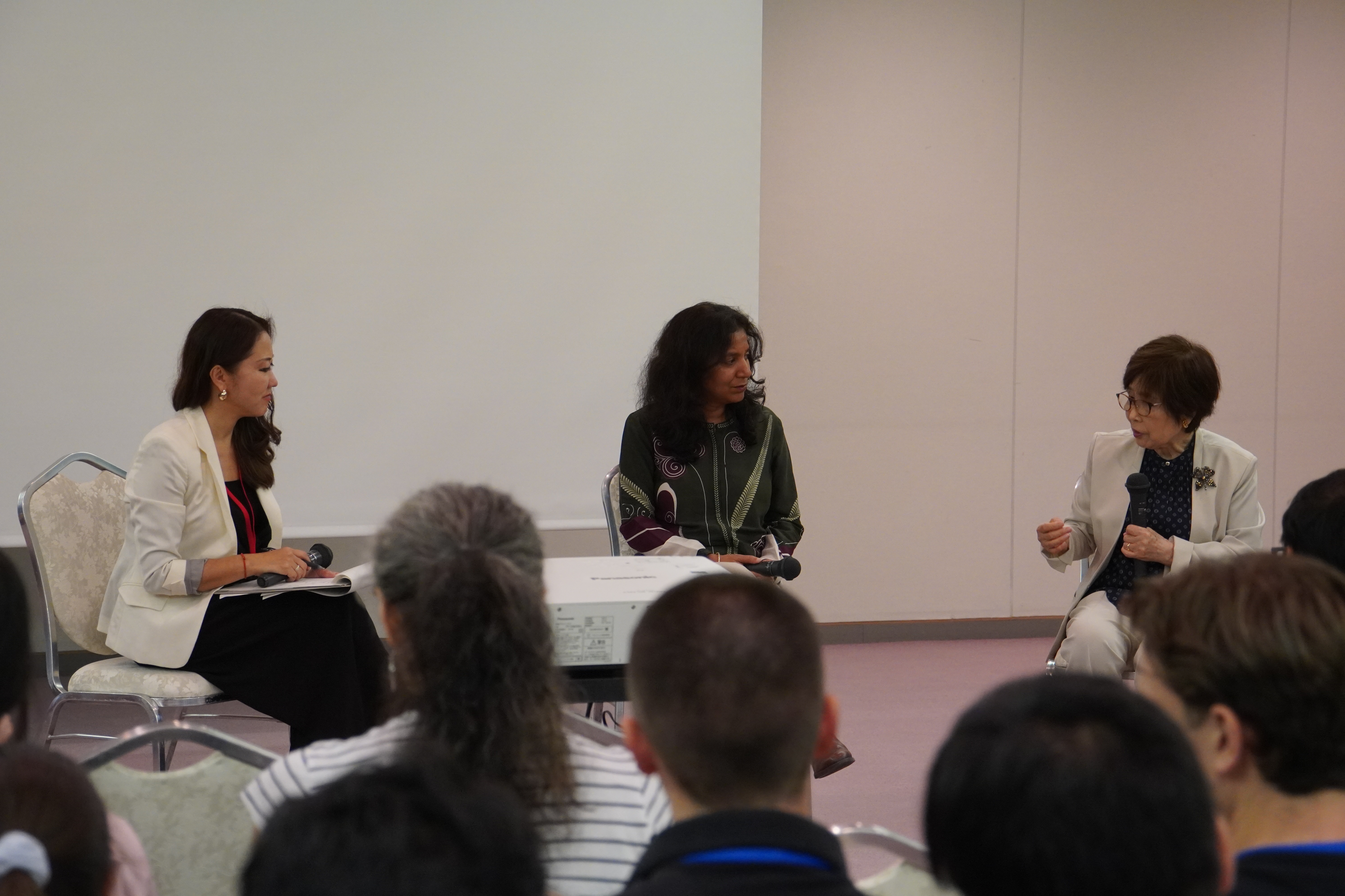 被爆者の小倉桂子氏とPreetha Rajaraman氏(放射線影響研究所 副代表)による対談