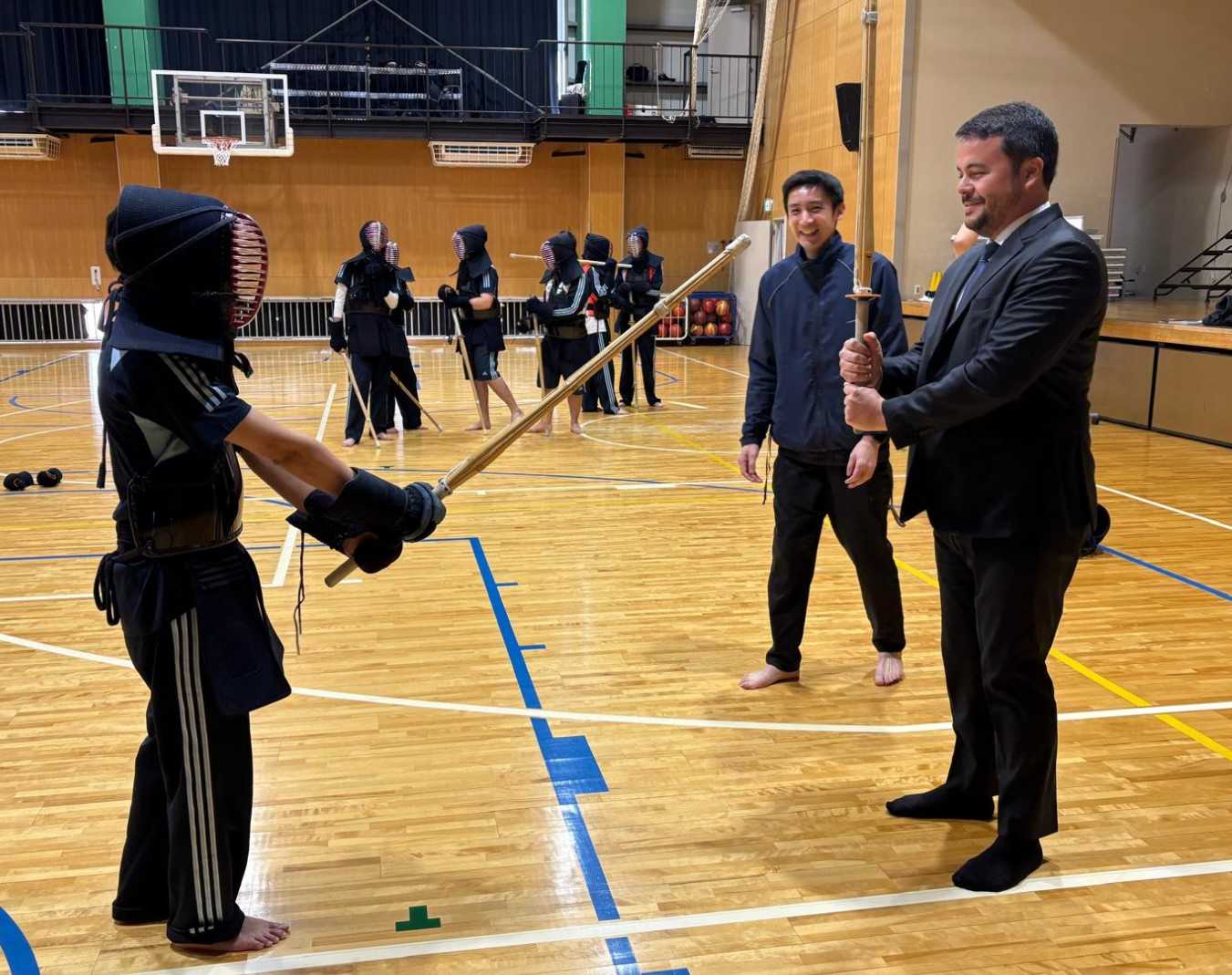 10か国語の語学授業も実施している私立関東国際高校を訪問し、日本の学校制度や教育行政制度にかかる講義を受けました。また、招へい者の関心分野でもある数学と体育の授業を見学すると共に、体育の授業では、学校側の配慮により剣道の体験をさせていただきました。関東国際高校は、同校が実施している海外の学校の合同国際交流プログラムである「世界教室」の拡大を進めており、今次の訪問をきっかけにブラジルからの同プログラムへの新規参加が期待されています。