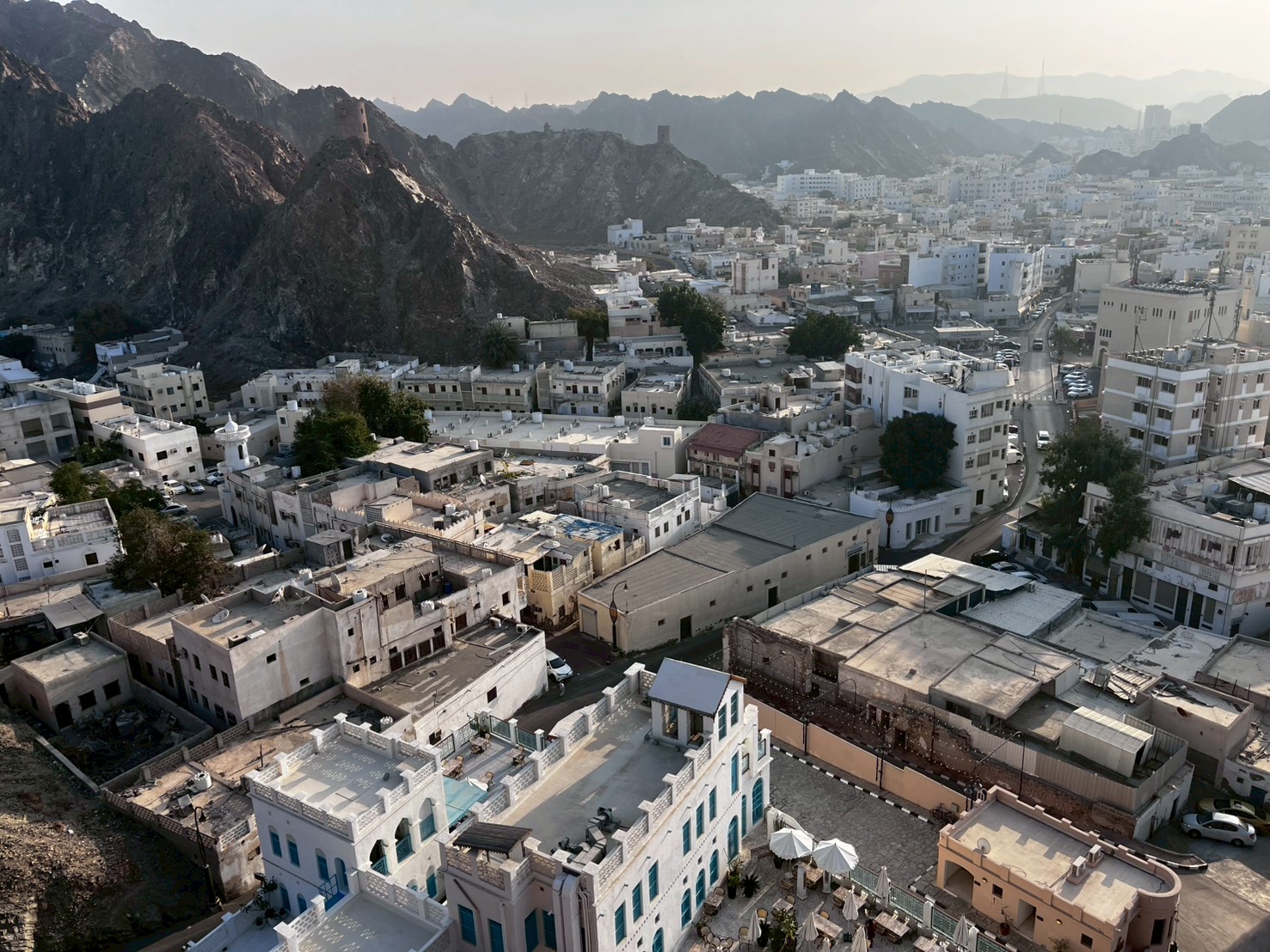 スークでの自由時間に訪れたマトラフォートからは、穏やかな海を望み、港湾都市として栄えるマスカットの姿を目の当たりにした。一方で、夕暮れの街並みは富裕層だけではないオマーンの生活のリアルを感じさせ、強く印象に残っている。