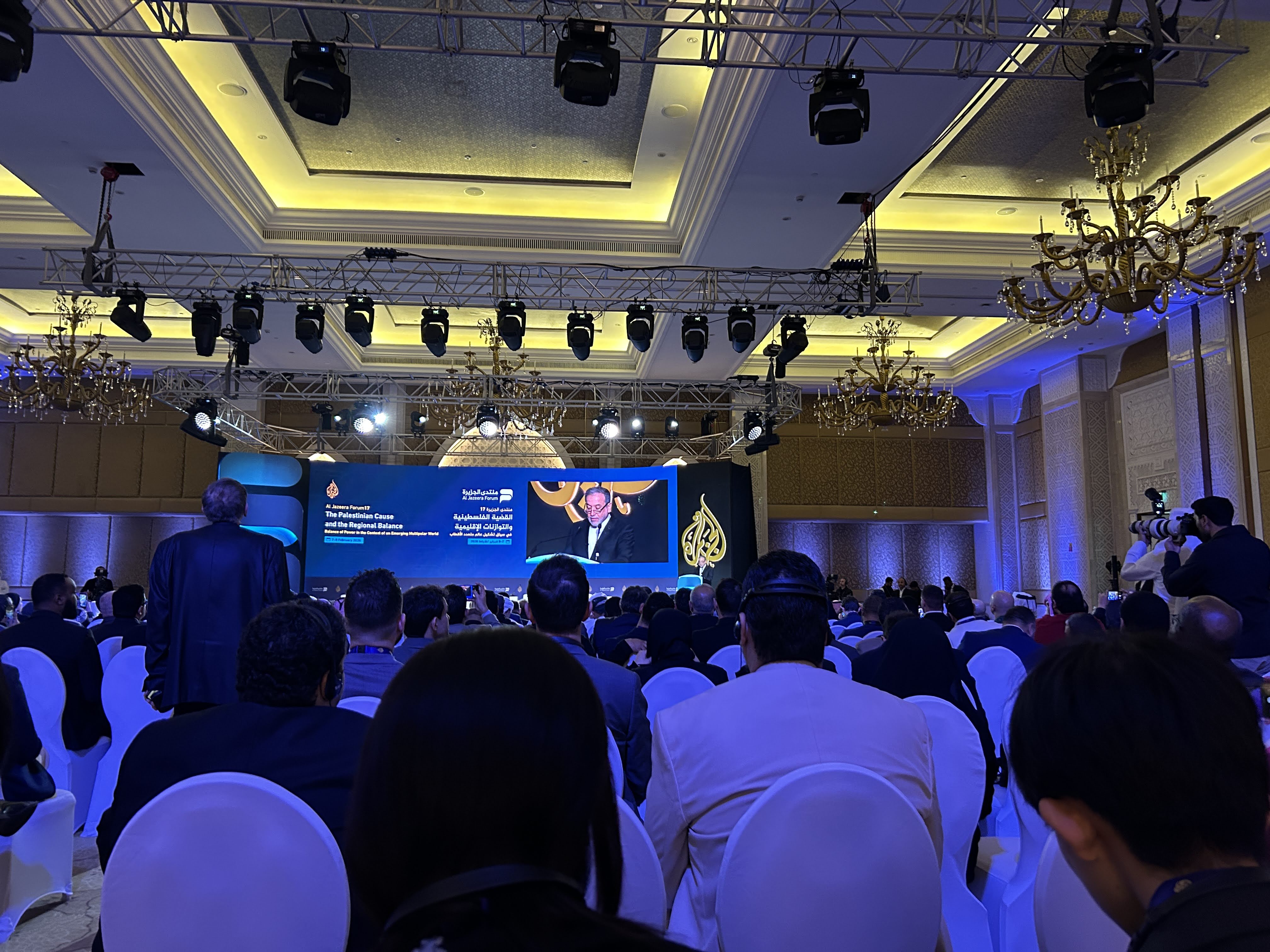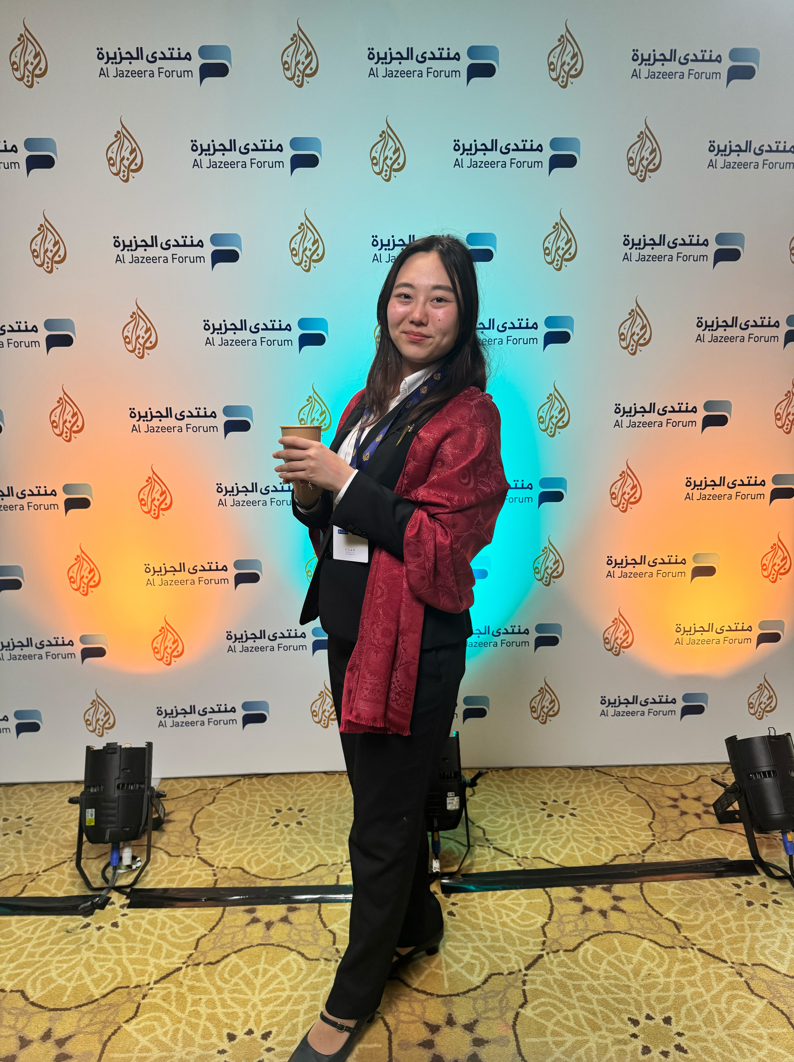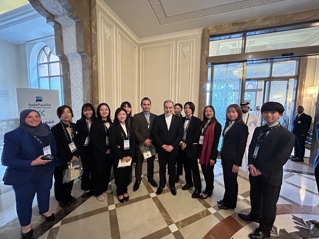 この日は、アルジャジーラ・フォーラムの初日でした。ドーハの高級住宅街の人工島The Pearlにあるホテルで開催されており、青い海に映える美しい会場に胸を高鳴らせながら入場しました。入場資格をめぐるトラブルもありましたが、笹川平和財団のネットワークのおかげで無事参加でき、この研修への有難みを改めて感じました。さらに、イランのアラグチ外相とわずかに言葉を交わす機会も設けられ、なんと写真まで撮らせていただきました。本当にお忙しい中、少し話した後風のように去っていったのを覚えています。大変貴重な機会をいただきました。