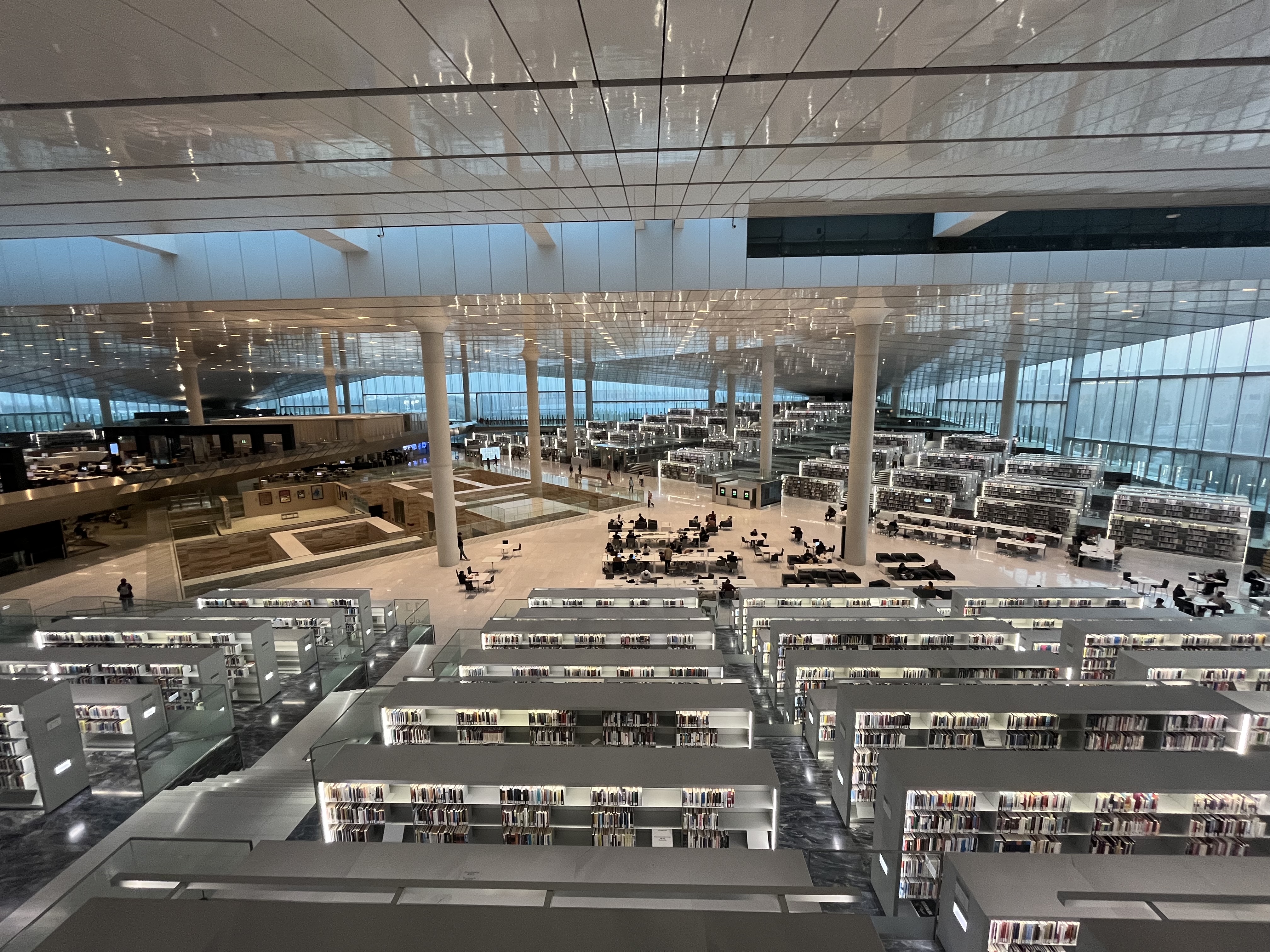 学生さんに「絶対に行ったほうがいい」と勧められた国立図書館も開放感があって、家族連れの姿も見られました。名残惜しさを振り切って駆け足で空港へ向かい、機内へ。上空から見えたドバイが美しかったです。