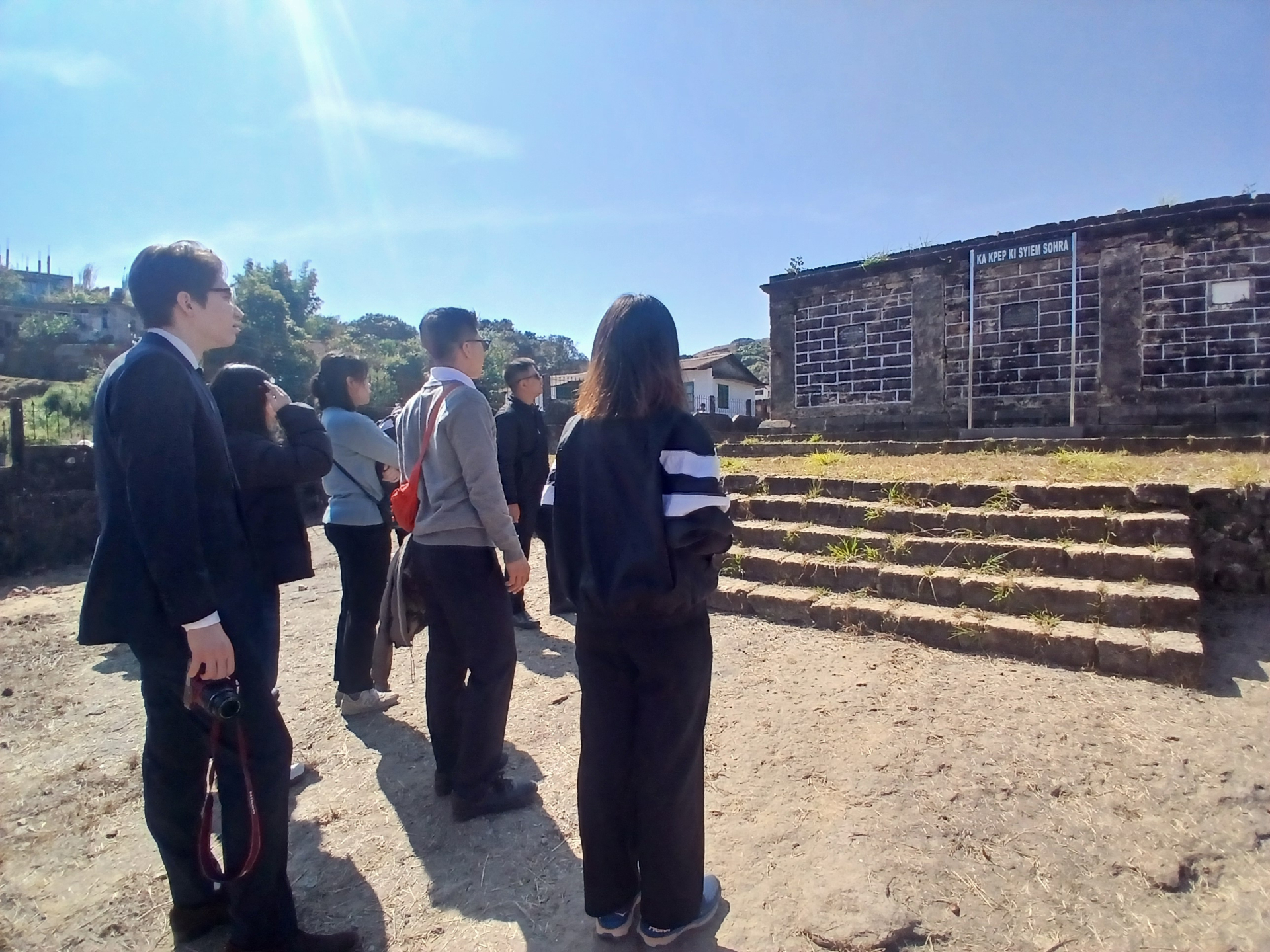 メガラヤ州では、先住民の伝統的な村の訪問、Asian Confluenceでの有識者との意見交換、St. Anthony’s Collegeでの歓迎式典および学生交流、学生宅でのホームステイを実施しました。あわせて、ダム、水処理場、保健センターも視察しました。