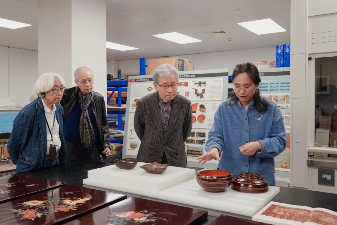 荊州文物保護センターで出土された古代漆器の説明を受ける