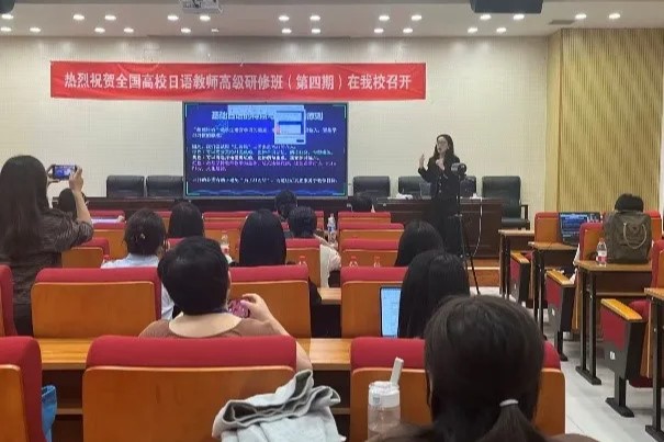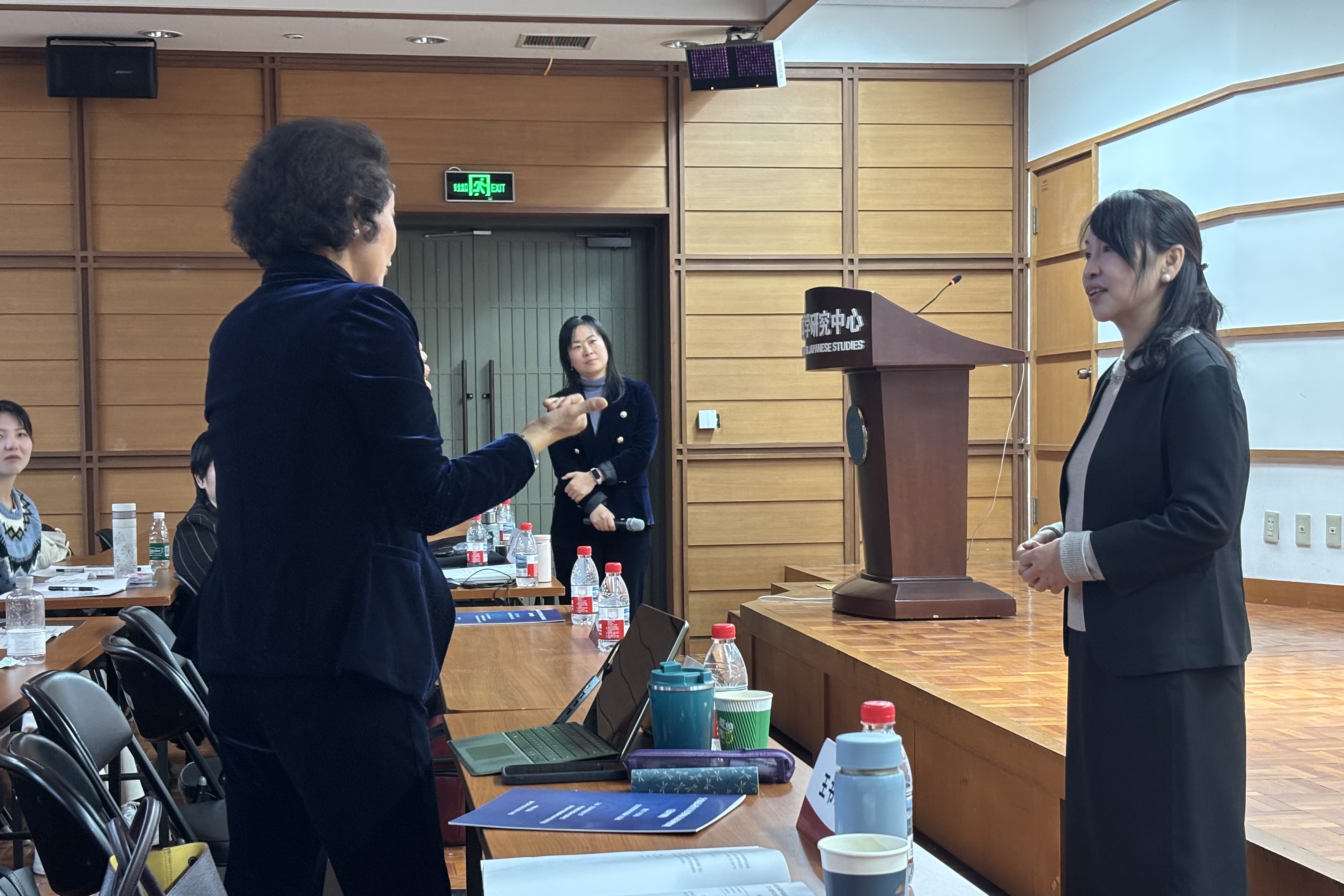 北京第二外国語学院の楊玲教授(右一)による講義