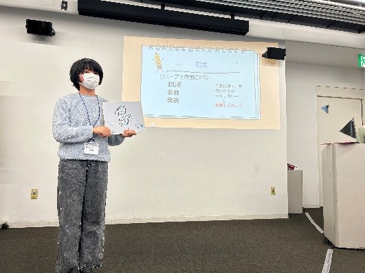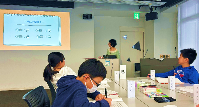 ワークショップの基本構成は、夏休みに開催した調布エフエムや印刷博物館の回とほぼ同じです。前半では、漢字は中国から日本に伝わり、その漢字を基に平仮名やカタカナが生まれたこと、漢字は4つに分類できること、日本から中国へ伝わった漢字もあること、漢字には私たちが日常で使う漢字のほか、簡体字や繁体字があることなどを学びました。クイズを交えながら、子どもたちが楽しく学べる工夫が随所に取り入れられていました。