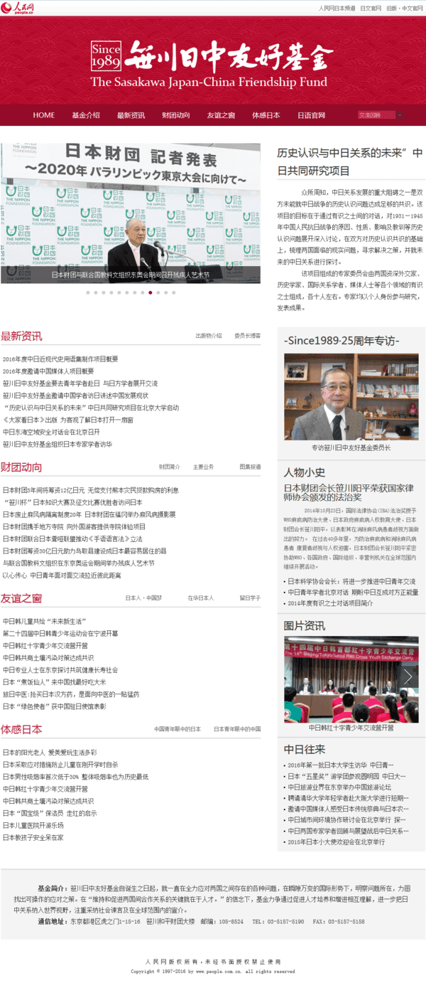本事業は、人民網と協力して笹川日中友好基金の中国語サイトを運営し、中国に向けた情報発信の強化を図るものです。