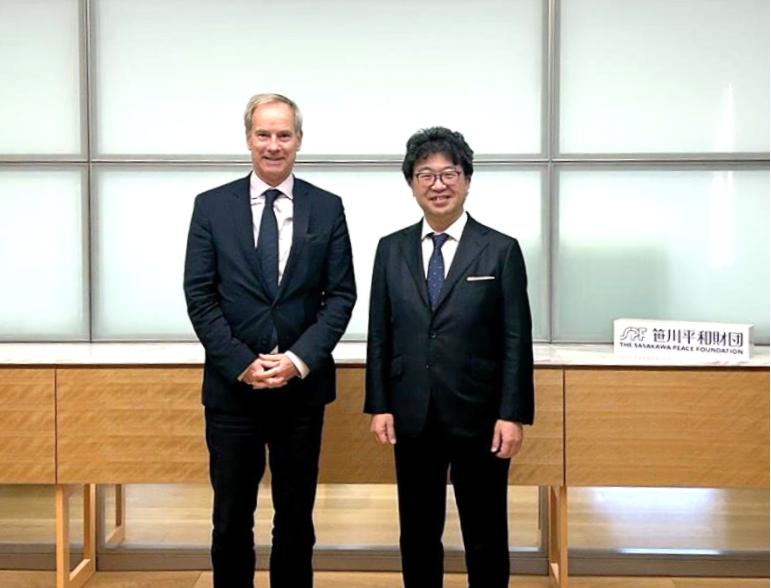 At the beginning of the meeting, Dr. Sunami welcomed Ambassador Skoog and highlighted the foundation’s signing last year of a memorandum of cooperation with the Government of Greenland, aimed at strengthening collaboration for peace and sustainable development in the Arctic region. He also emphasized the importance of the strategic partnership between Japan and Europe.