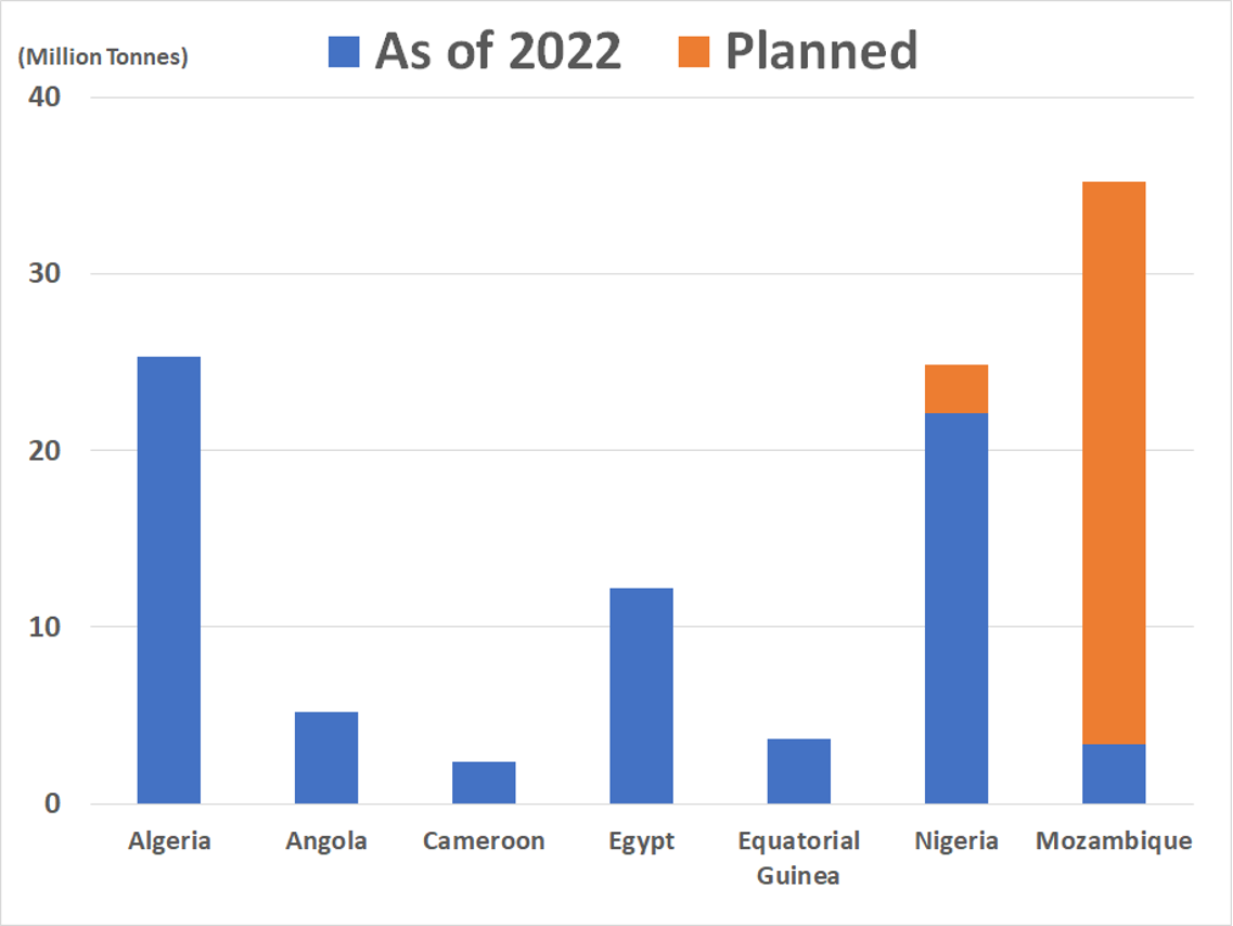 Given the concerns surrounding gas procurement from the U.S. and Qatar, there are high expectations for African countries to serve as alternative gas suppliers. Geographically close to Europe and rich in gas reserves, African nations have the potential to become major natural gas exporters. According to the Gas Exporting Countries Forum (GECF), African countries exported a total of around 86 billion cubic meters of gas in 2022, with over 60% of this amount—around 54 billion cubic meters (equivalent to 39 million tons)—exported as LNG.