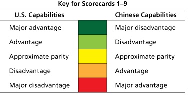 (2) この研究は、中国本土からの距離の相違と、1996年から2017年までの異なる時点での、様々なタイプの紛争における米軍と中国軍の相対的な能力を査定するために、一連の「スコアカード」を使用している。完全なオープン・ソースに基づくスコアカードは、アジアにおけるバランス・オブ・パワーがどのように変化するか、そして将来においてアメリカが直面すると予想される課題についての、より深い論議の基礎を提供するものである。その目的は戦争回避にあることを強調しておきたい。