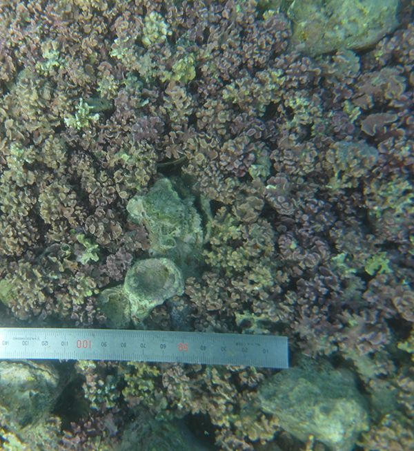 ■Figure 2. Brown algae attached to a rhodolith