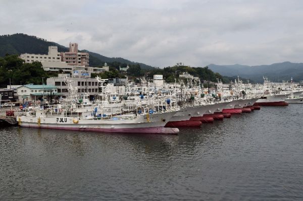 Tuna and saury fishing vessels moored at Kesennuma Fishing Port (provided by the Sanriku Shimposya)