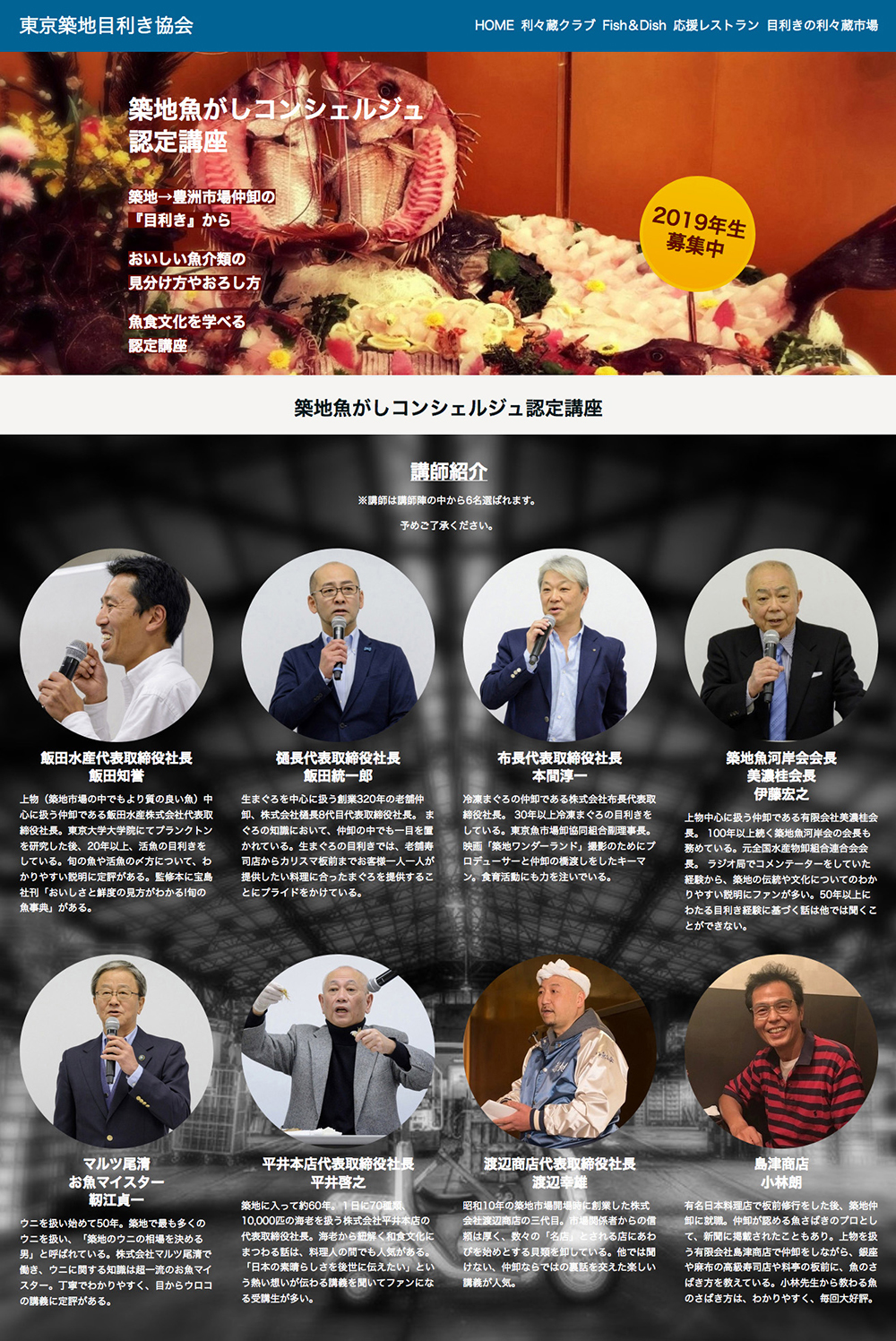 当初は、魚河岸の魚を食べる会としてホームパーティなどを開催するところから始め、豊洲移転が延期となった一年後、2017年11月に第一回築地魚がしコンシェルジュ認定講座を開講しました。