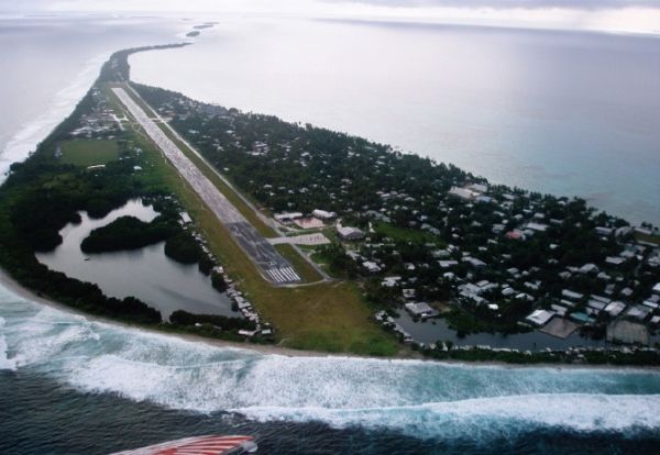 ■9つの環礁からなるツバルの首都、フナフチ環礁のフォンガファレ島(筆者撮影)