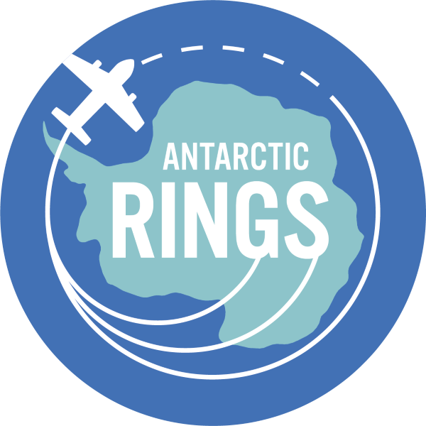 ■図3 Antarctic RINGSのロゴ。航空機を主に使って、南極沿岸域を少なくとも3周するというプロジェクトの目標を示している。実際は、3つの輪を地域ごとに区切り、データ空白域が出ないように調整しながら、地域ごとの観測を行う。