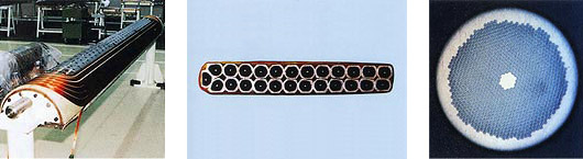 図は実験用大型超電導磁石に用いた超電導コイルと線材の断面を示したものです。