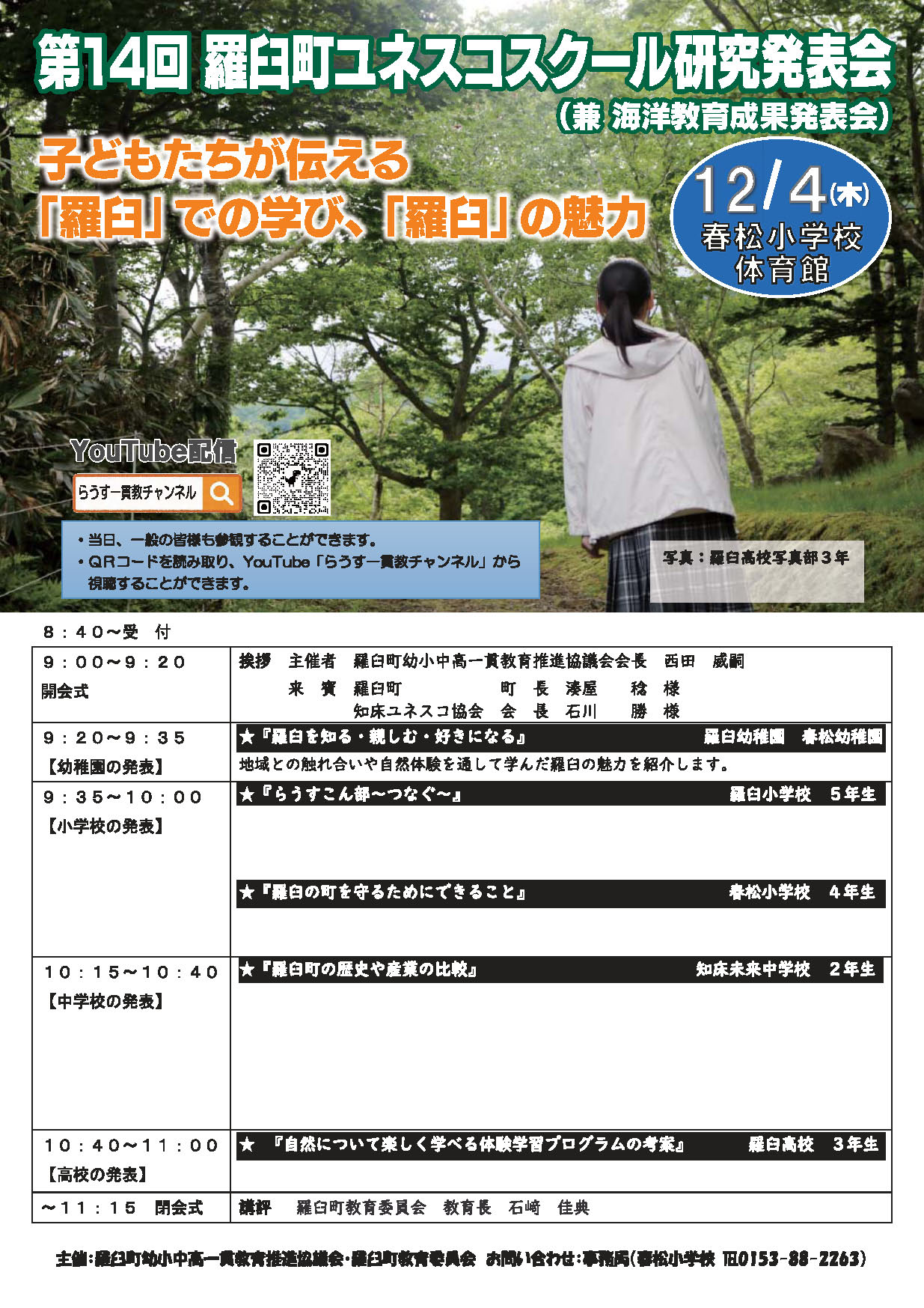 主催:羅臼町幼小中高一貫教育推進協議会・羅臼町教育委員会