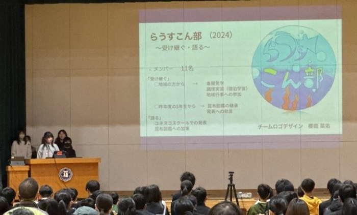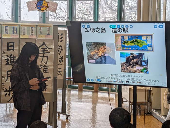 徳之島での研修の成果の発表会を、令和7年2月5日に春松小学校、13日に羅臼小学校、3月5日に知床未来中学校、3月24日に羅臼高校で開催した。それぞれの学校で当該校の交流会参加者が、プレゼンテーション形式で、各校の児童生徒に徳之島での学びを報告した。