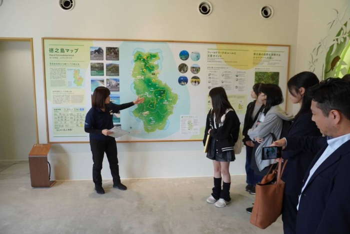 昨年12月にオープンしたばかりの徳之島世界遺産センターを訪問し、徳之島の成り立ちや歴史、生息する動植物などについてレクチャーを受けた。また、徳之島の森を再現したジオラマや展示されている資料を見て、徳之島にも知床と同じく多種多様な生物が暮らしていることについて学んだ。