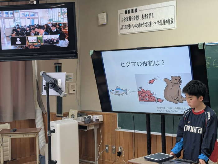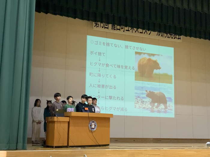 上記の学習を行ったうえで、12月に羅臼町内のすべての幼稚園・小学校・中学校・高校が参加する場において学習の成果をプレゼンテーションにより発表を行った。