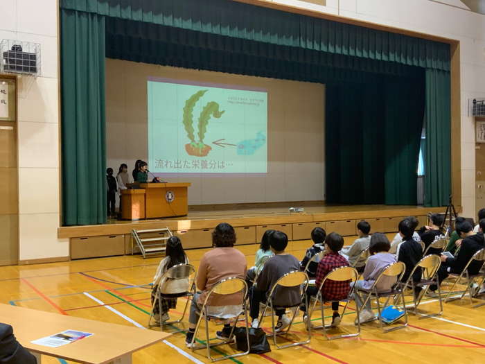 ブルーカーボン学習を行い、羅臼の海に生息している昆布によって二酸化炭素がおさえられていることや津波学習など、環境問題について関心を高める学習を実施した。