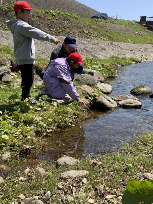 第1・2学年では、幼稚園からの学びをつなぎ、主に地域の自然について活動を通して学んでいる。第2学年ではCSコーディネーターや漁協の協力を得て、サケ稚魚への餌やり体験や稚魚放流式などの体験活動を行っている。また、一昨年度からは、CSコーディネーターを窓口に、サケの羅臼川回帰の様子を見学するとともに、国語「サケが大きくなるまで」と関連付けて学習を展開することで、サケの生態等について学びを深めている。これらの学びきっかけとし、羅臼の自然の豊かさや地域の方の取組について知り、「ふるさと羅臼」に対する思いを強くもつことができた。また、第4学年での漁業に関する学習や第5学年での昆布学習に繋げることができている。