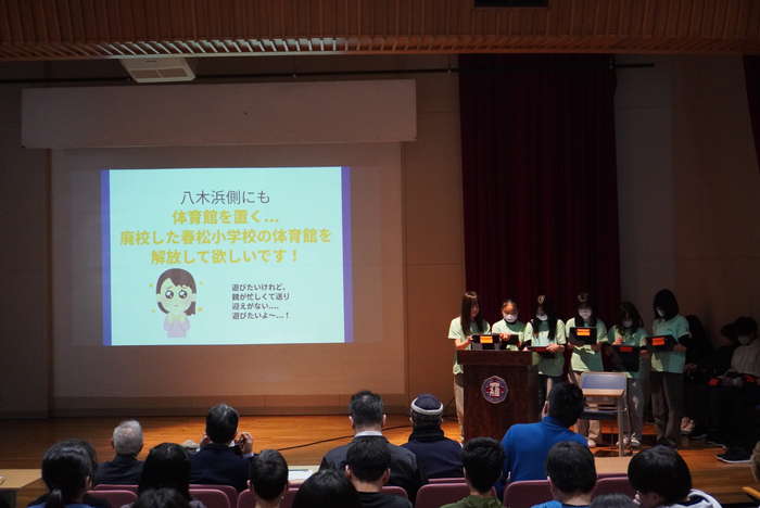 また、2月に行われた「まちづくり提案会」では、これまでの海洋教育で学んだことを踏まえ、これからの羅臼町発展に向けてグループごとに調べたり自分たちの考えをまとめたりした。またそれらを保護者や地域の方々に発信した。