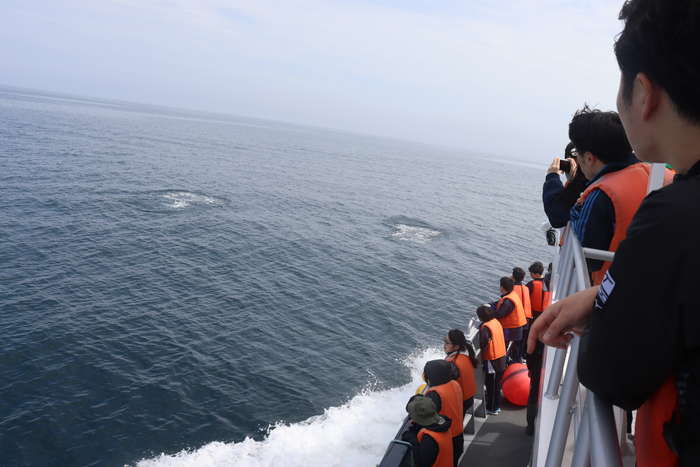 ・クルージング体験:観光船に乗り、羅臼町の海洋動物の生息域と生育条件、観光利用について理解を深めた。