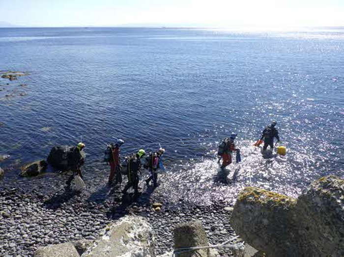 ロープワーク等の実践的技術、スクーバダイビングのライセンス取得をする。希望者のみ、潜水士へ挑戦する。