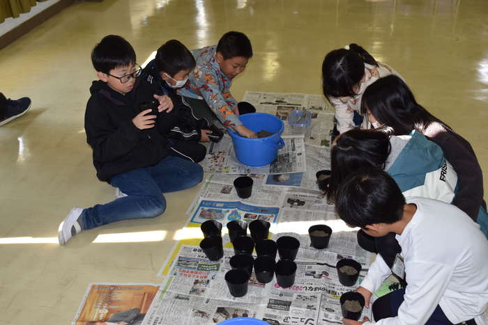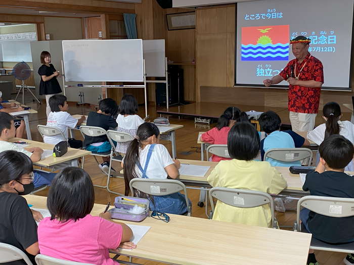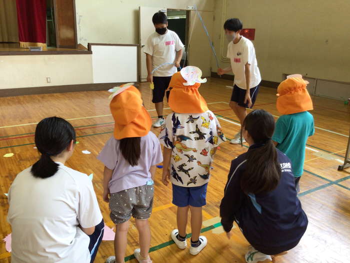 小泉小学校が毎年全学年で実施してきた行事を,津谷小学校が受け継いで7月に実施した。津谷小学校1年生,5年生だけでなく,津谷幼稚園と小泉幼稚園の年長児,津谷中学校1年生も参加し,幼保小中交流も兼ねている。