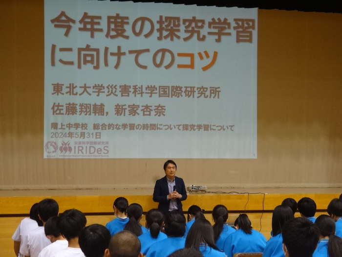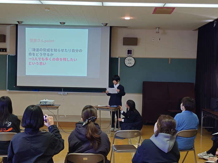 東北大学災害科学国際研究所の准教授から探究学習の進め方についてガイダンスを受けた後に、様々な分野で活躍している方を(津波防災、地域、福祉、海洋環境など)講師に招き、ワークショップを行った。また、生徒たちの防災・減災の意識を高めるために、東日本大震災と能登半島沖地震の状況や地域との関わりなどについての防災講話を行った。