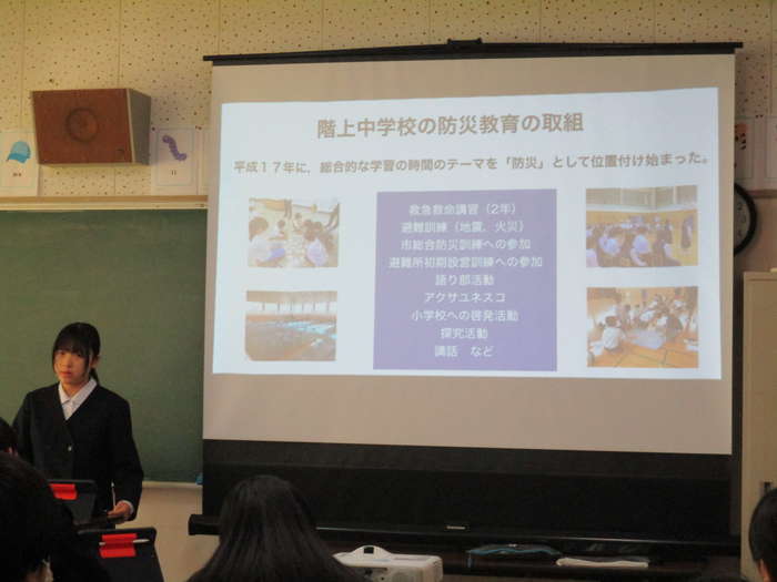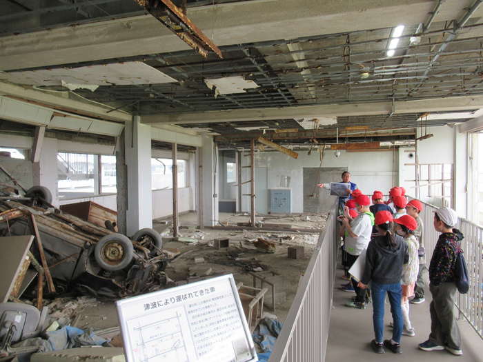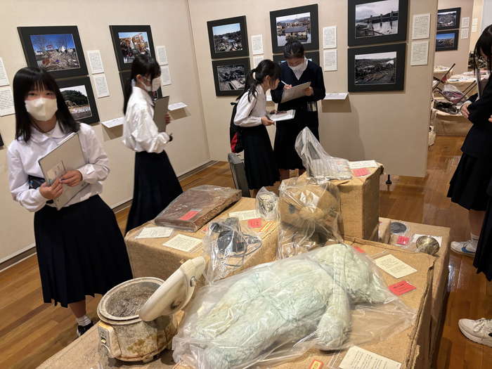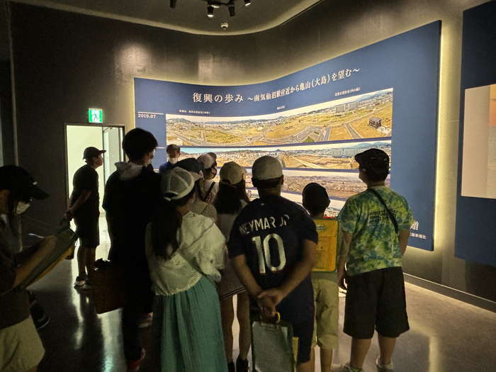 1年生は、東日本大震災の被害状況や当時の様子、震災を伝承するための取組や復興へのまちづくりなどついて学ぶため、リアス・アーク美術館の見学を行った。また、2年生は、気仙沼の震災による津波被害状況と復興のためのまちづくりなどを他地域と比較するため、岩手県陸前高田市の東日本大震災津波伝承館を訪問した。