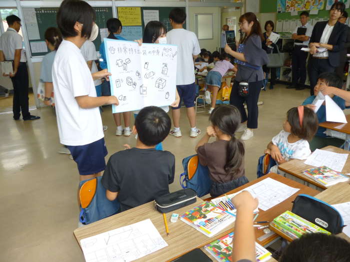まちづくりをテーマにして学習した6年生では,地域の課題と理想について考え,自分たちなりのアイディアで地域の課題を解決しようとする態度を育むことができた。アイディアを保護者に向けて発信し,保護者とのやり取りを行うことで,別の角度からの考えにも気付くことができた。