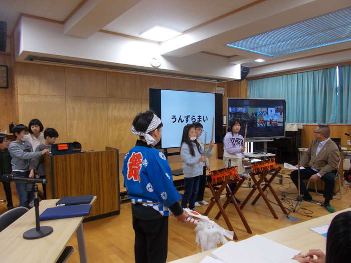 ・3年生は、岩井崎の生き物調査、やじの川の生物調査を通して海と川の生態系の関わりを知ることができた。また、航海安全や大漁を願う伝統芸能の明戸虎舞を、明戸虎舞保存会の方々に教えて頂く体験を通し、地域と海のつながり、地域の願いや伝統を受け継ぐ思いを知ることができた。