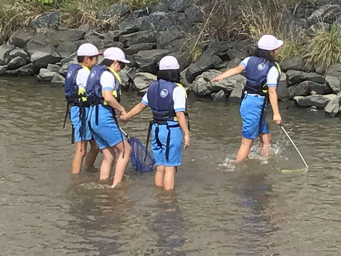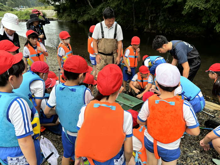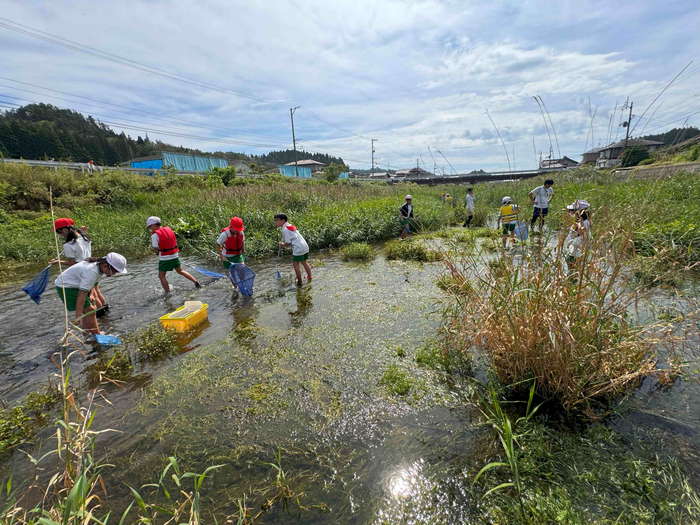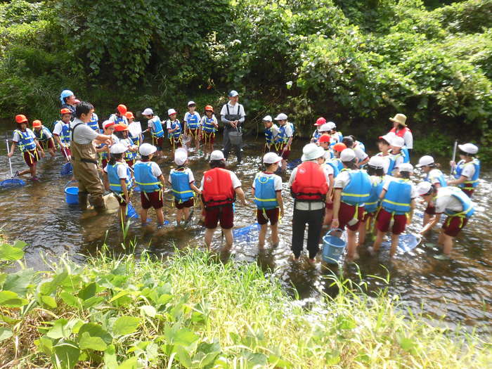 4年生では宮城教育大学教授の協力による神山川の水生生物調査を行った。実際に水生生物を飼育したことで、児童の興味関心が高まり、課題解決に向けて意欲的に取り組むことができた。児童は水生生物がどのような環境下で生きているのかを学ぶことができ、生物が生きるためには川と山のつながりが大切であることに気付くことができた。