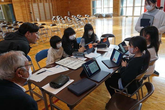(4) 他地域の教育委員会との連携を基盤に,海洋教育パイオニアスクールプログラム採択校同士(沖縄県竹富町立波照間小中学校,大原中学校)とのオンライン交流学習を試行的に実施した。両教育委員会の共通認識による連携のもと,教員同士の研修視察と意見交換を経て,児童生徒同士による学習交流として実現できたことは大きな前進であり財産となった。「海と生きる」を共通テーマに,地域への愛着と誇りの醸成に結び付けるためにはどうしていくか,この交流をいかに持続的なものにできるか等,交流のその先を共に描きながら互いメリットを生み出す合意形成に努めていく必要がある。