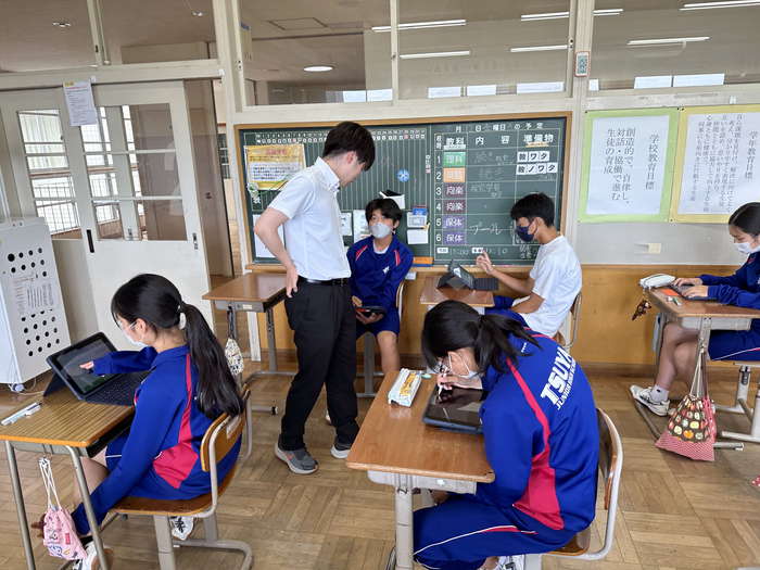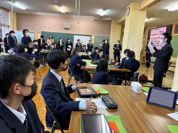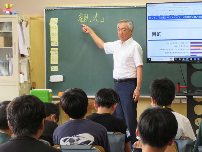 市内の事業所へ訪問した際の質問をまとめたり、市内の海水浴場で集めたごみを分析したりした。また、ロイロノートなどを活用し、集めた情報を整理・分析した。