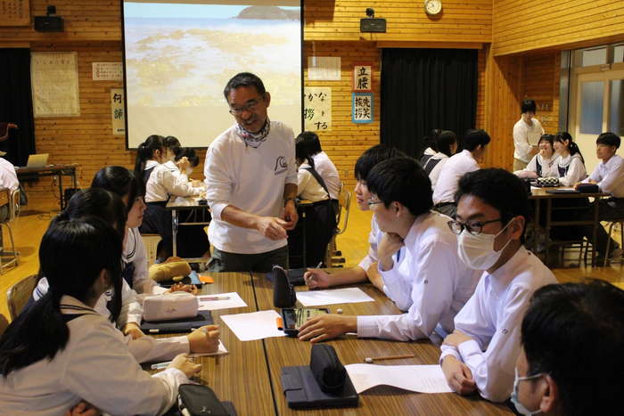 講話やフィールドワークなどの体験学習を通じて、実際の海洋環境に触れたり、漁業関係者や 専門家から話を聞いたりする活動を設けた。この活動を通して、海洋への理解と関心を深めるとともに、地域の良さや課題を自分ごととして捉え、地域社会の一員としての自覚を深め、地域の課題解決に貢献する意識を育てることをねらいとした。