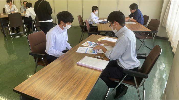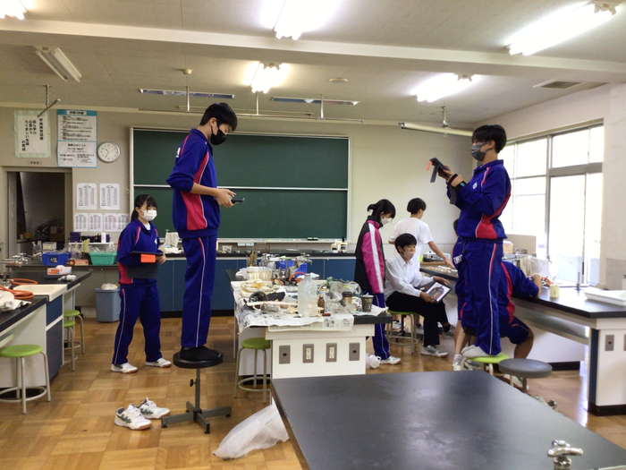 生徒が講話やワークショップを通して興味・関心を持った内容を基に、防災、産業、まちづくり、環境、海洋などの視点から自由に探究テーマを決定させ、探究活動に取り組ませた。海洋をテーマに設定した生徒には、調査活動の場面で、海洋教育副読本を活用させるなどしながら探究活動に取り組ませた。
