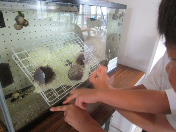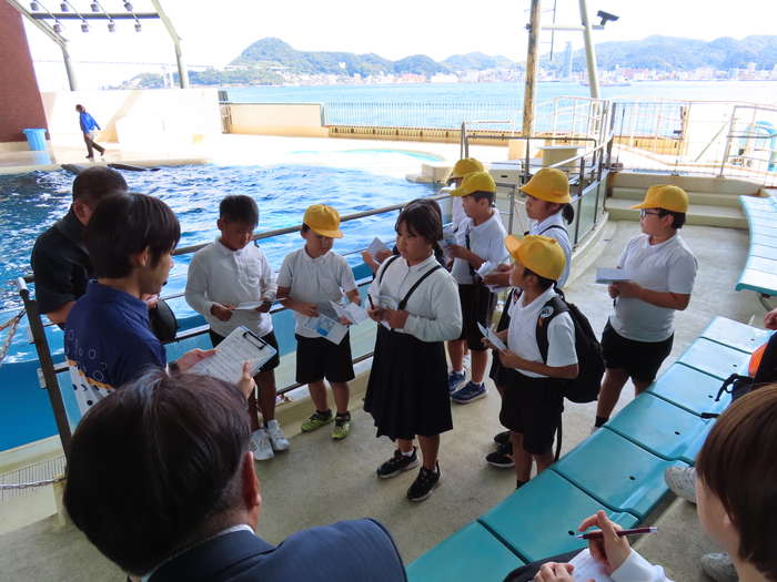「浮島水族館を充実しよう」 子どもが育てている浮島水族館の課題を考え、魚の飼育の仕方を工夫するとともに、海響館に見学に行ったりなぎさ水族館と連携したりしながら、環境の改善を図る活動を通して海の生態について理解させ、さらに今後の取り組みにつて計画を立てることができるようにする。