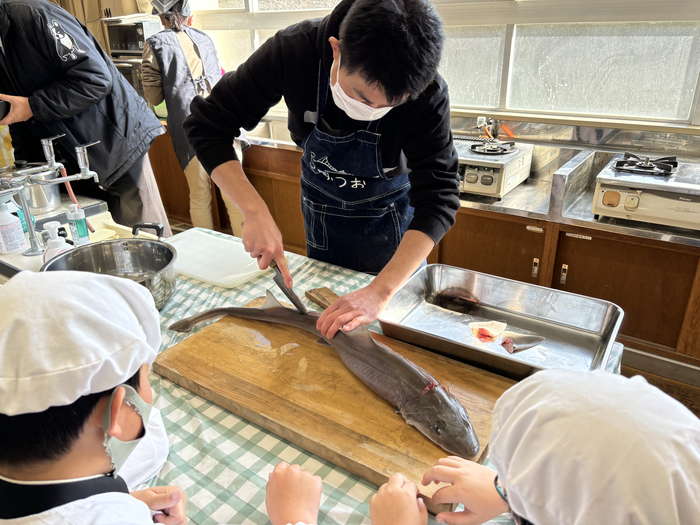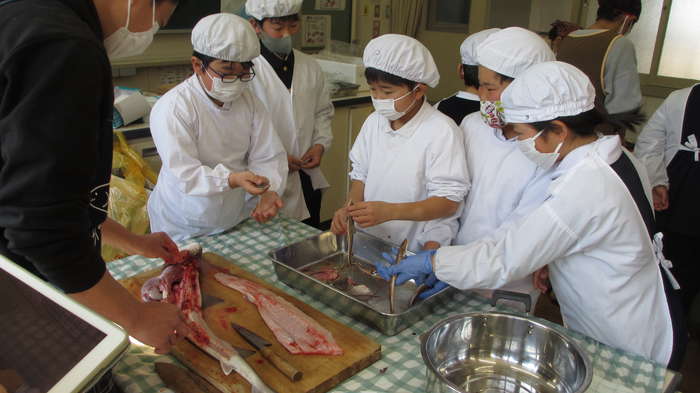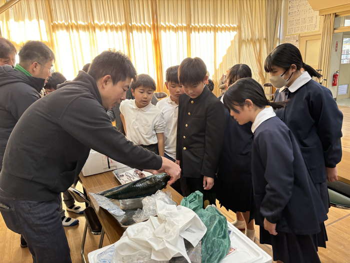 ○「おさかな大学」 日本サステナブルシーフード協会の鈴木先生をお招きし、様々な地域の魚について学習するとともに、魚を使った調理を家族と体験することで、自然のありがたさや、大切さを理解する。