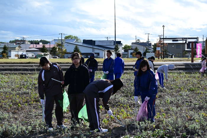 海の学びを体系的に学んだ生徒による自治活動として、「知床ゴミゼロ運動」を生徒会で取り組む。海洋ゴミ問題をテーマに身近にできる活動を生徒たちの自主的な活動として実践する。生徒の自治活動から海洋への興味関心を高め、海洋リテラシーを高めることで探究活動への一助を養う取り組みである。本活動を通して、生徒の海洋環境への興味関心の高まりが実感できる。