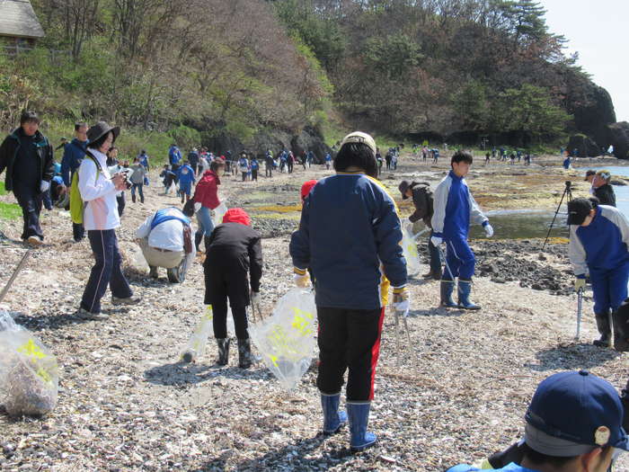 小沢地区の海岸を観察し、「景観」の視点から自分たちができることを考えた。