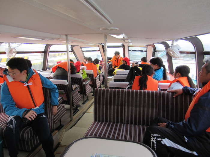 脇野沢から出航する観光遊覧船「夢の平成号」に乗船し、イルカウォッチングを行った。約30頭のカマイルカの群れに遭遇し、親子で並んで泳いだり水面を跳ねたりする姿を観察することができた。