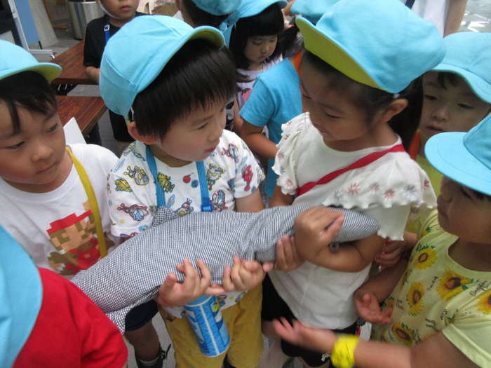 ・完成した新巻鮭が完成したものを手にして、食料としてのサケを体感し、制作前と後のサケを比較する。