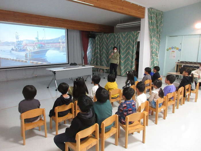 ・動画を使用しての学習 釜石魚市場の定置船入港・競り・定置網をしている様子の動画を見ながら、