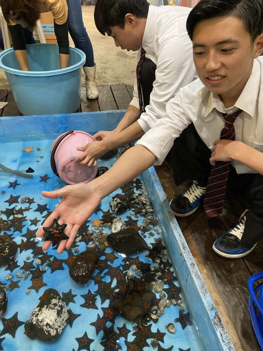目的:銚子市の沿岸域で体験的な学習を行い、海洋生物に親しみ、海洋環境について理解を深める。