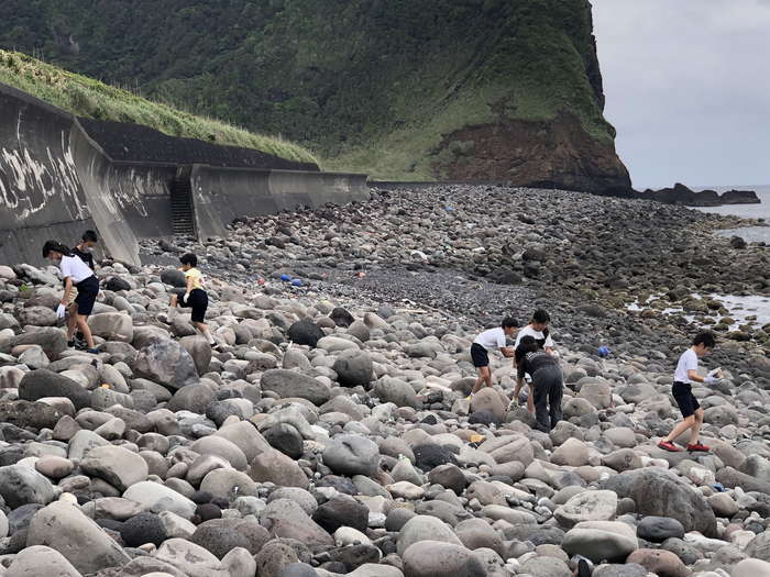 海洋ごみが八丈島の海にも影響を与えていることに気付き、海の美しさや生態系を脅かしている現実に目を向けていく。児童がまず海洋ごみの問題を知り(1学期島内の磯、海岸の調査)、自分たちの生活と海との関わりを考え、どのようにしてこの問題に取り組めるのかを考え、実際に自分たちで行動することで、海を守るためにできることを実践していく。(2学期)