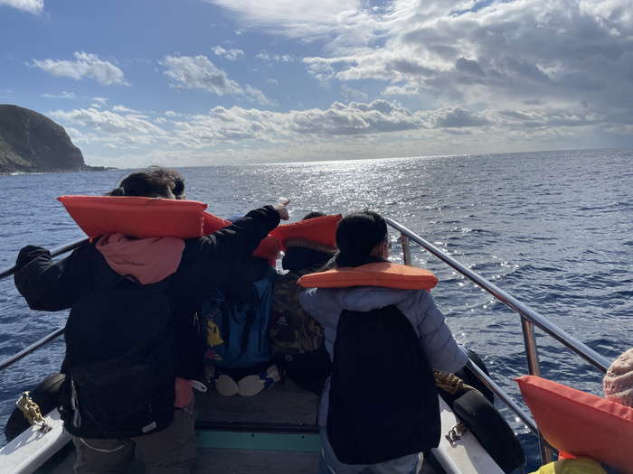 近年、八丈島の近海でホエールウォッチングが盛んに行われている。漁船に乗り、児童も鯨を見に行くことで改めて、八丈島の海や自然の雄大さを実感した。1年間の学びや体験を学習発表会で参観者に向けて環境保全についてのメッセージを発信した。